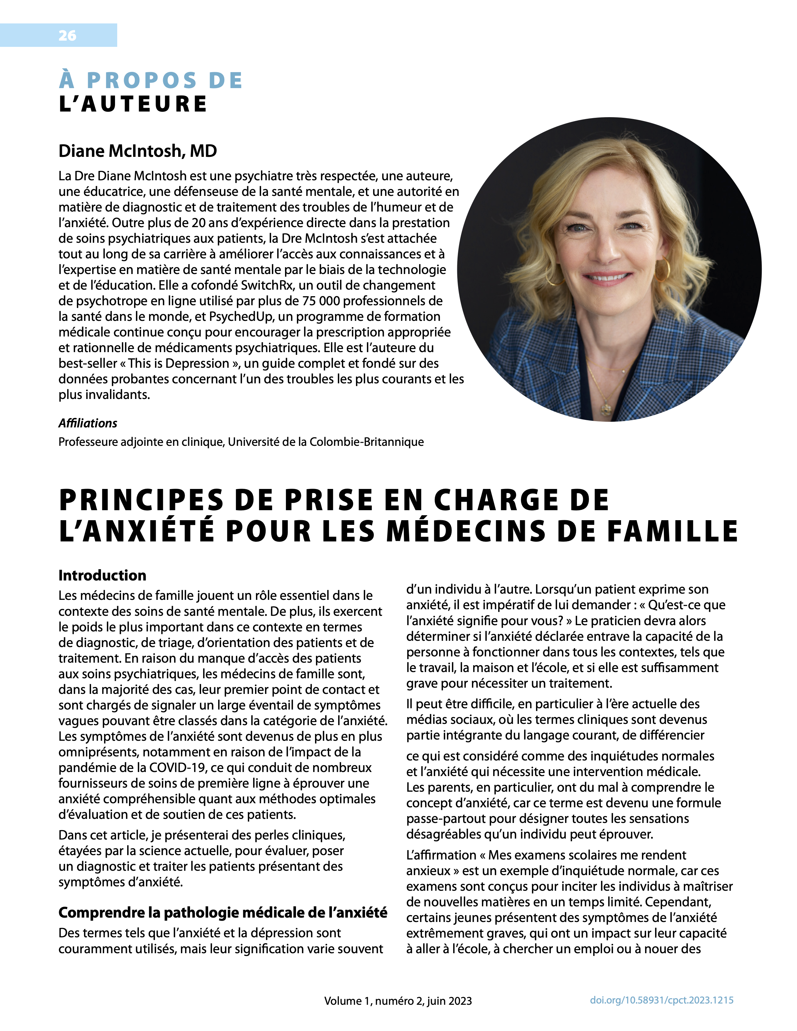 Dans cet article, je présenterai des perles cliniques, étayées par la science actuelle, pour évaluer, poser un diagnostic et traiter les patients présentant des symptômes d’anxiété.