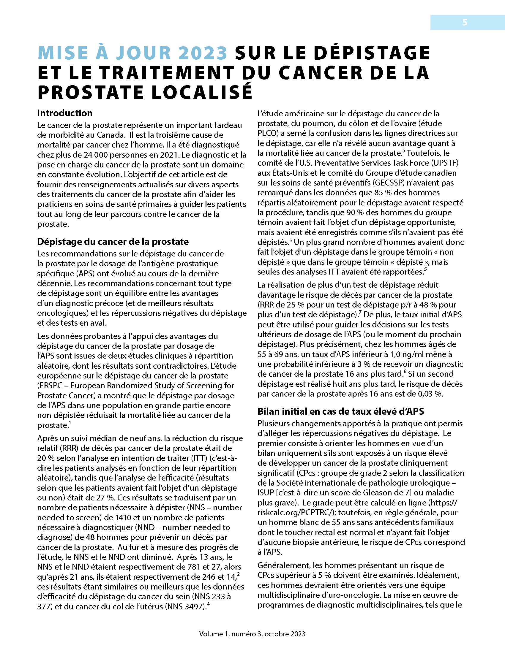 - Mise à jour 2023 sur le dépistage et le traitement du cancer de la prostate localisé
