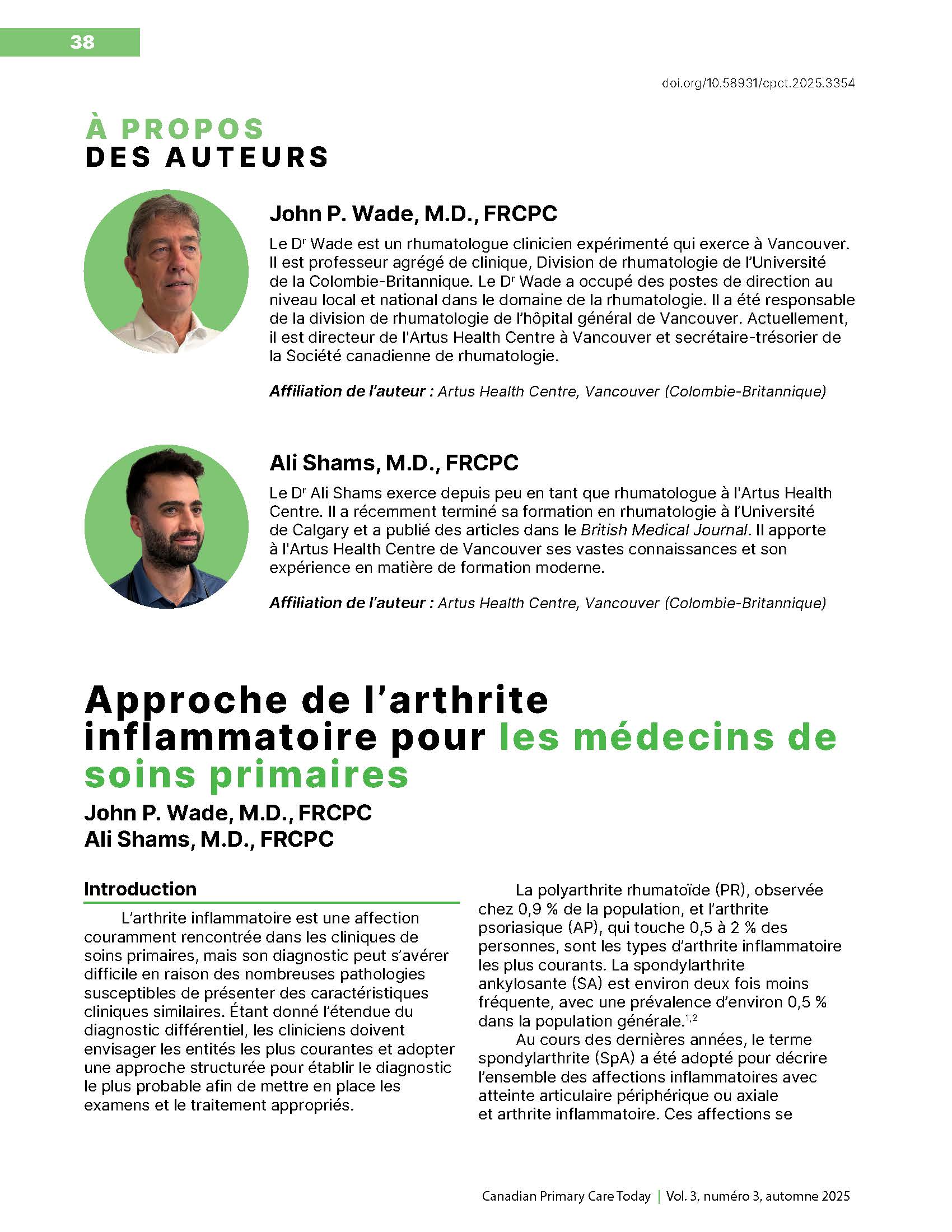 - Approach to Inflammatory Arthritis for Primary Care Physicians