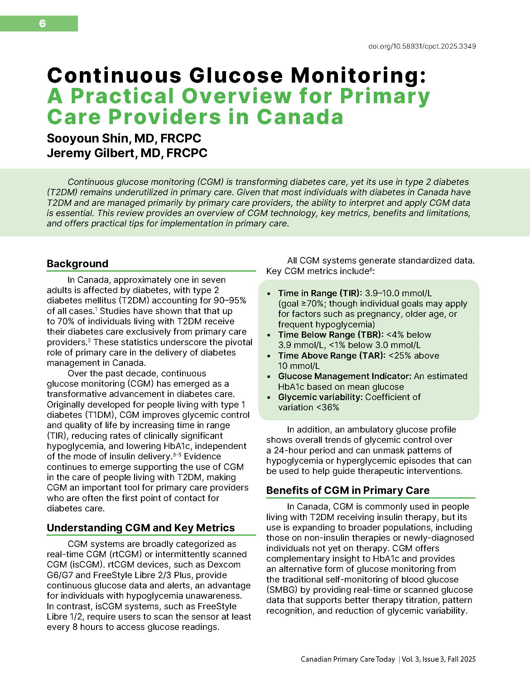 - Continuous Glucose Monitoring: A Practical Overview for Primary Care Providers in Canada