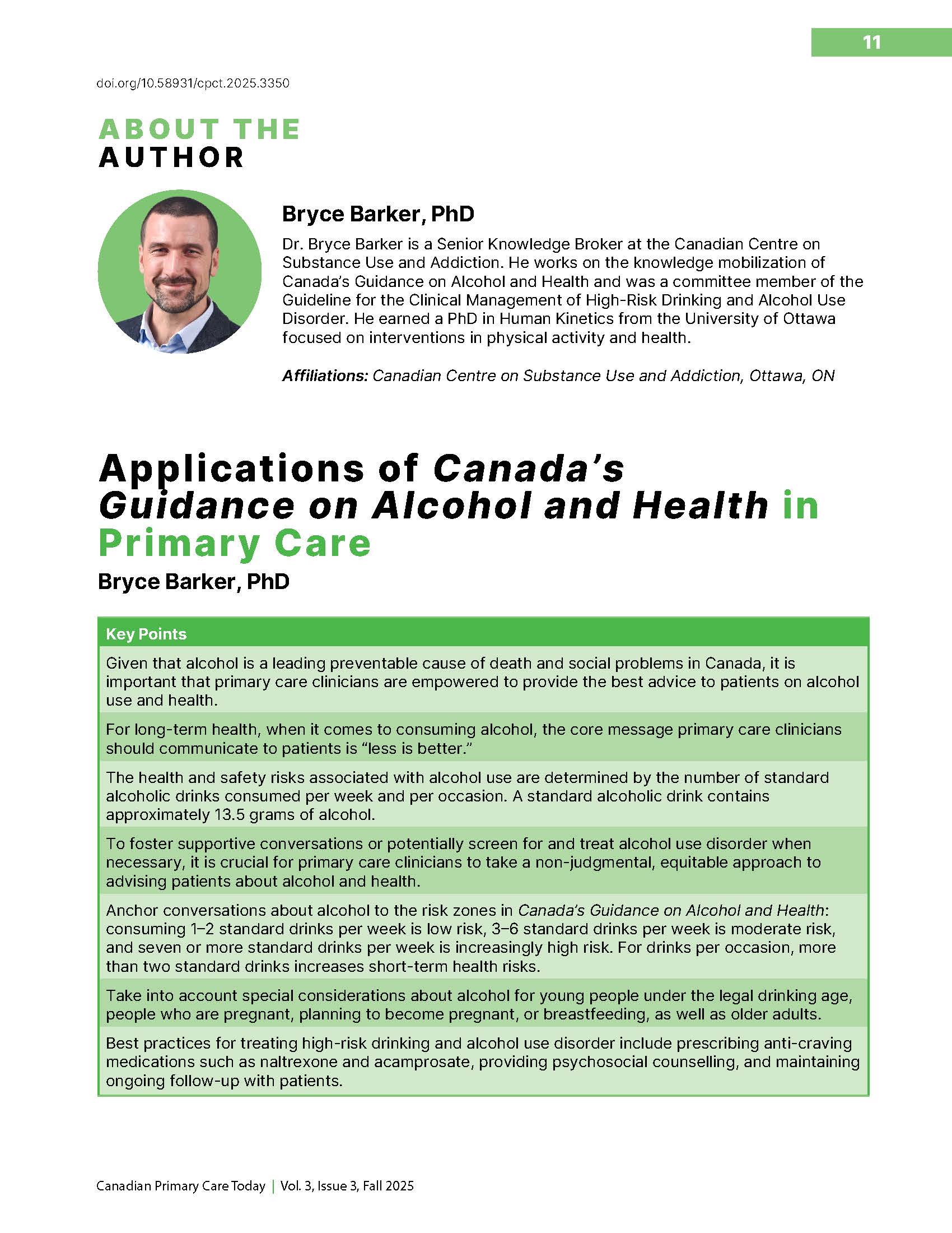 - Applications of Canada’s Guidance on Alcohol and Health in Primary Care