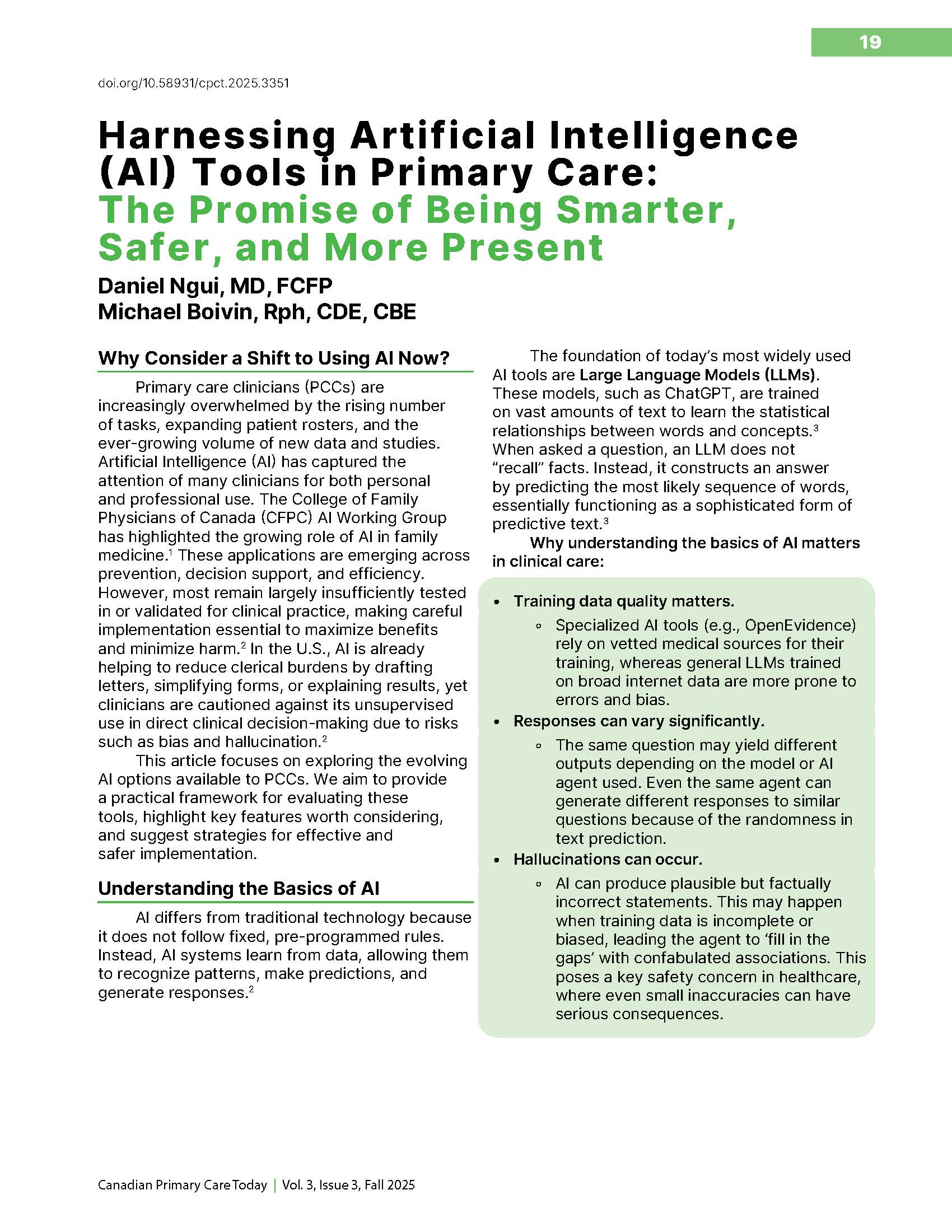 - Harnessing Artificial Intelligence (AI) Tools in Primary Care: The Promise of Being Smarter, Safer, and More Present
