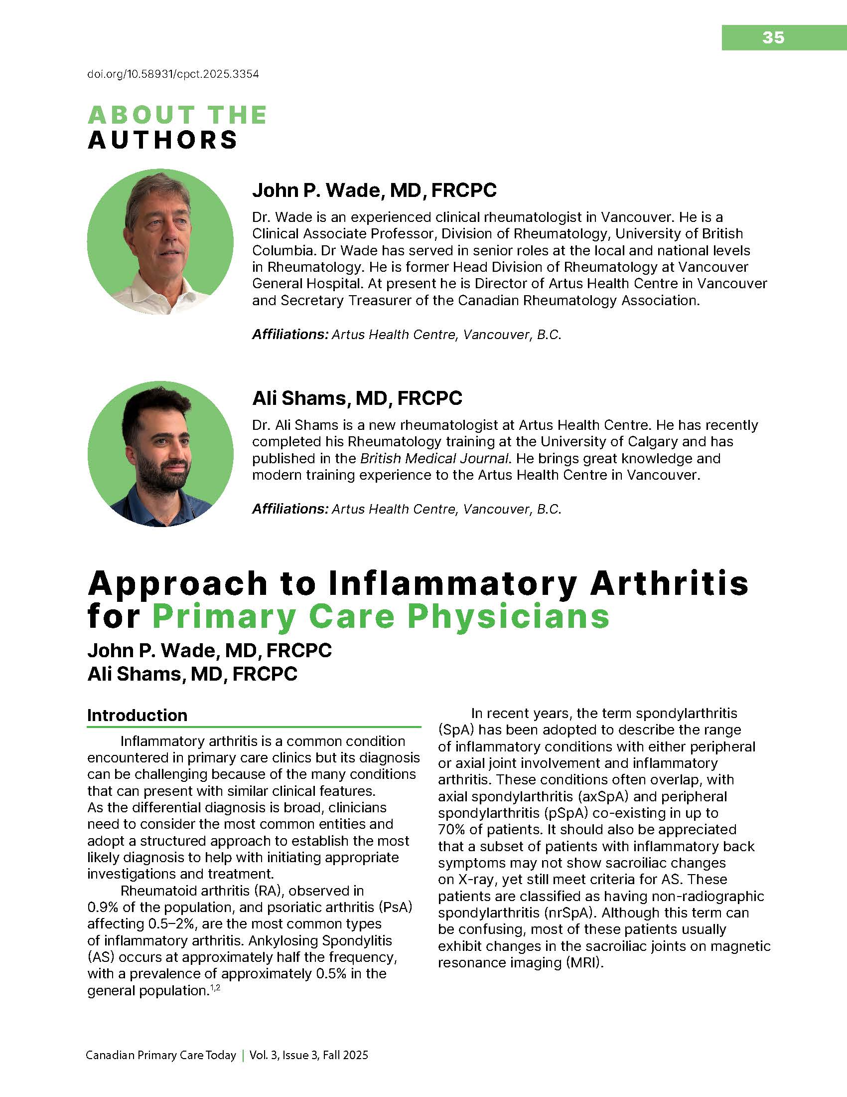- Approach to Inflammatory Arthritis for Primary Care Physicians